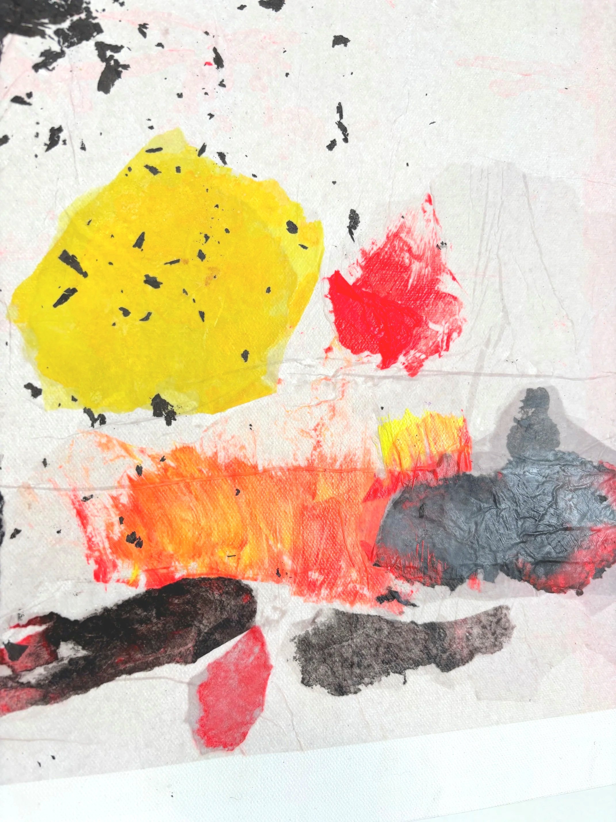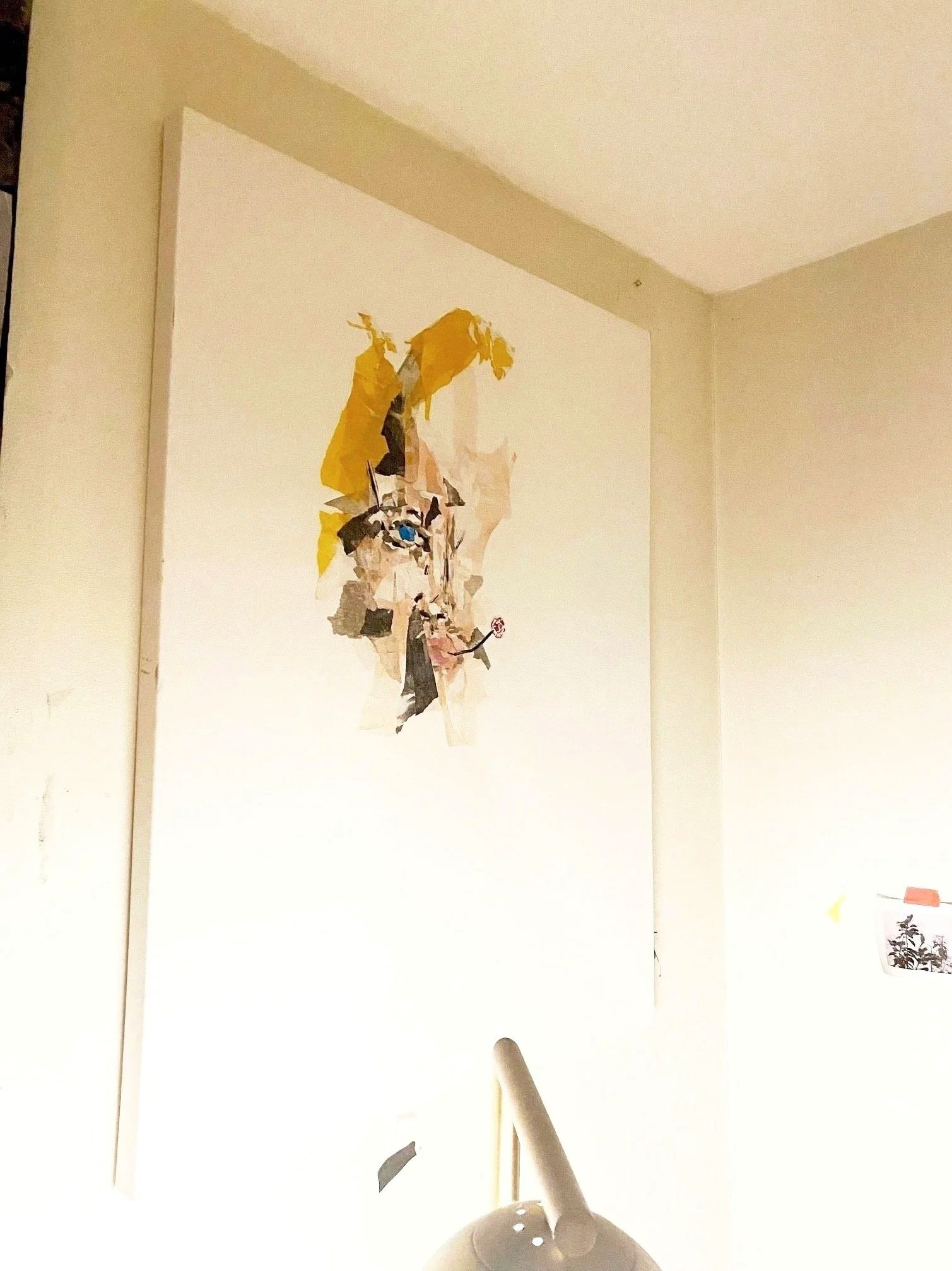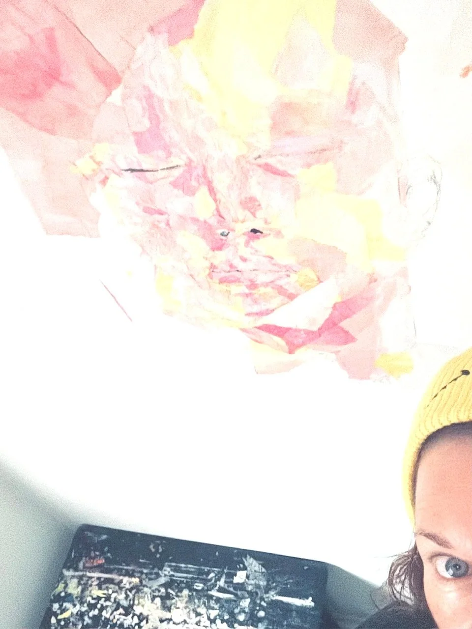 paper painted/torn/reformed Self Portrait 24x30” (2023)Chill cubed chin-up + sugarcane sweet sour me, wholesomely good/universally loved :) Inspired by 1995 me experiencing humiliation + silenced same/again.