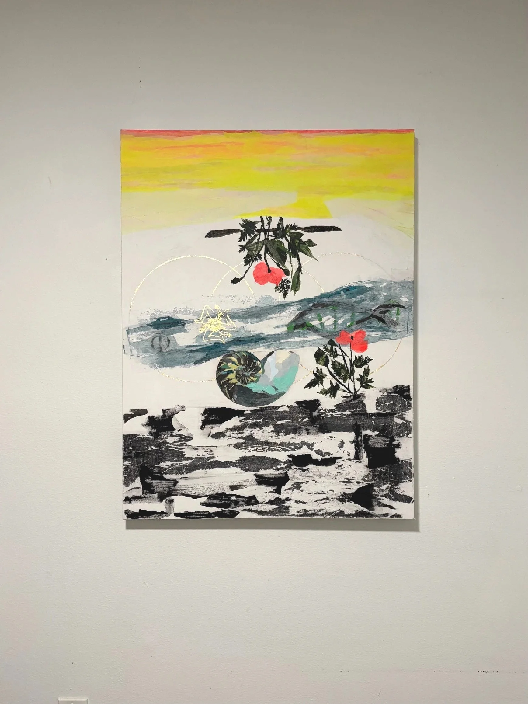 Reference is 24 x 36” of personal M&O moment photographed in India. The story behind it involves a monsoon, a lagoon + courageous me. This rising parrot was my ghost design brand image for 14yrs + formulated my business name: Rise.
