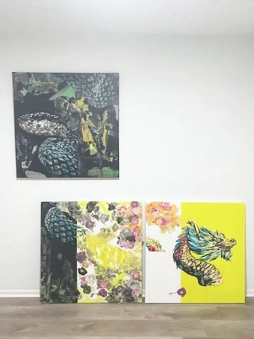 Paper painted/torn/reformed triptych creation 3x 36x36”